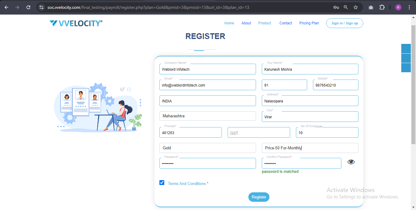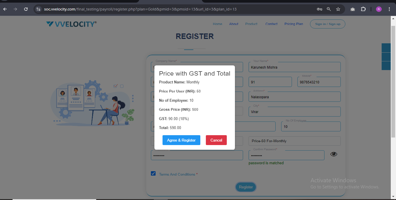 You will see a window displaying the payment details. Review them and click on 'Agree & Register'.