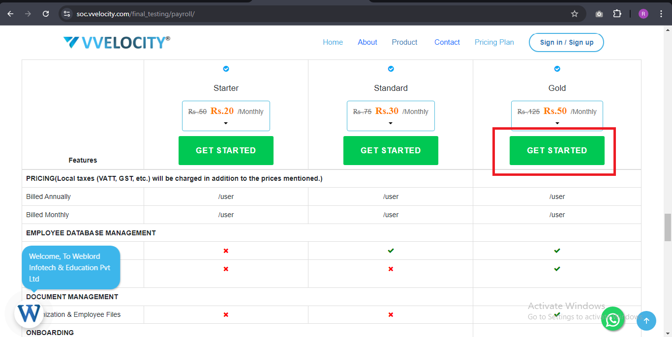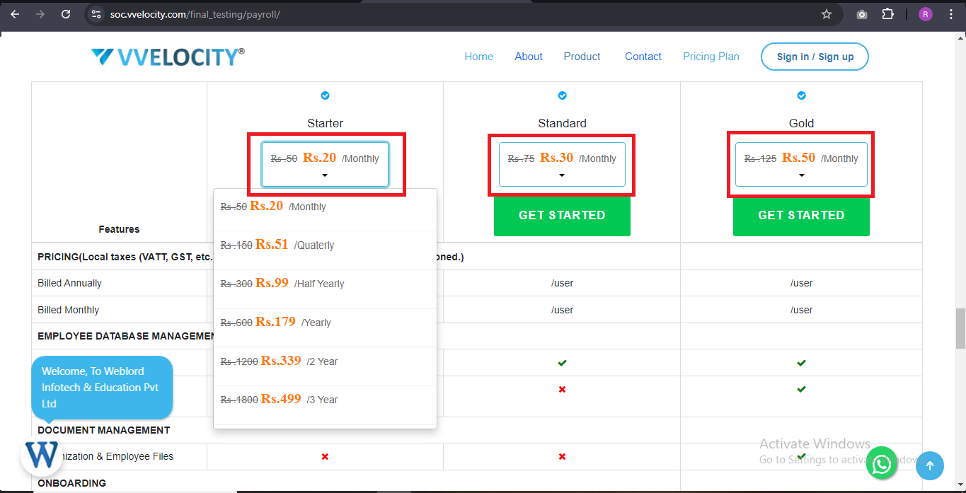 By clicking on the 'Pricing Plan,' you will be redirected to three options.